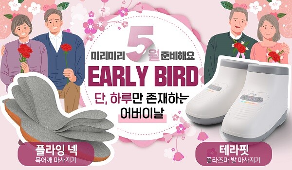 어버이날을 맞이해 메디니스에서 준비한 이벤트 대상 제품은 총 11종으로 ▲로켓다이얼 손마사지기 ▲냥이 손마사지기▲베니스 손마사지기 ▲휴먼터치 손마사지기 ▲부스터 마사지건과 프라벨 발 관리기 ▲포미 온열 손마사지기 ▲자동스텝퍼 구구팔 ▲슬랜더 허벅지 마사지기 ▲러블리 목·어깨 ▲플라잉넥 마사지 쿠션이 준비되있다.