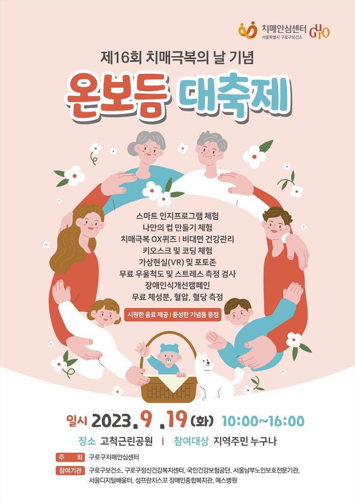 이번 축제는 치매 문제를 새롭게 인식하는 계기를 마련하고 치매친화적인 환경을 조성하기 위해 준비된 것으로, 오전 10시부터 오후 4시까지 진행된다.