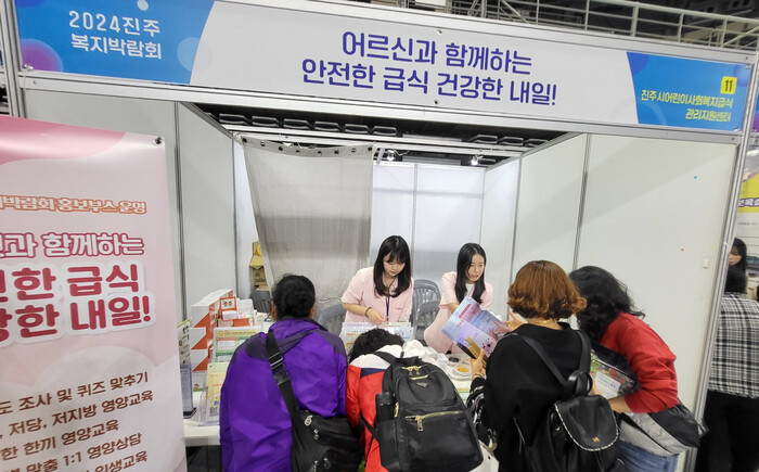 진주시 어린이·사회복지급식관리지원센터는 지난 5일 초장동 진주실내체육관에서 개최된 ‘2024 진주복지박람회’와 연계하여‘어르신과 함께하는 안전한 급식, 건강한 내일’이란 주제로 홍보부스를 운영했다.