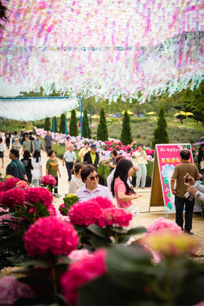 감성 포토존은 평소 보기 어려운 자주색, 파란색, 핑크색, 흰색 등 다양한 색깔의 수국들이 피어 있어 인생 사진을 남기려는 가족, 친구, 연인들로 긴 대기줄이 이어졌지만, 저마다 구경꾼이 되어 사진을 찍는 사람들을 바라보며, 기다림마저도 즐거운 시간을 보냈다.