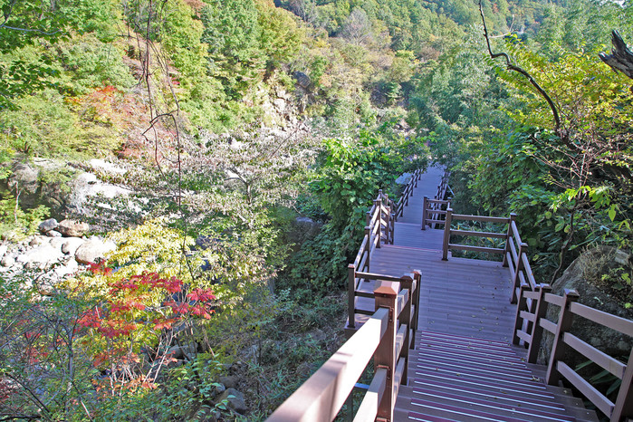 산청군은 중요 포인트마다 관람데크를 설치해 중산계곡의 정취를 느낄 수 있도록 했다.
