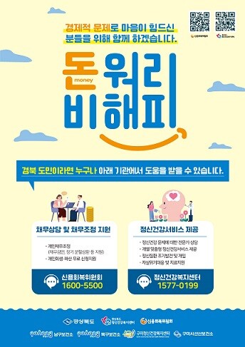 [안동=박병상 기자]경북도는 과중한 채무와 신용문제 등으로 경제적 위기에 직면해 있는 도민들의 자살예방 안전망 구축에 나선다.