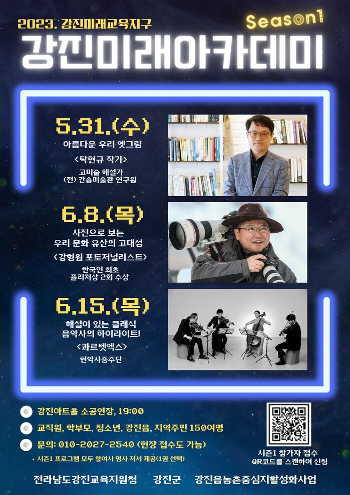 강진미래아카데미는 지역 사회에서 만나기 어려운 명사를 초청해 전문 지식과 경험을 듣는 자리로, 5월 31일부터 총 3회에 걸쳐 아트홀 소극장에서 열린다.