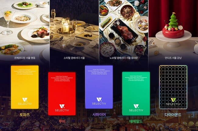 셀렉티브는 멤버십 하나로 하얏트 호텔의 ‘안다즈 서울 강남’, 메리어트의 ‘르메르디앙 서울 명동’, 아코르의 ‘소피텔 앰배서더 서울’, ‘노보텔 앰배서더 서울 동대문’ 등에서 다양한 혜택을 누릴 수 있는 글로벌 호텔 브랜드 통합 멤버십이다.