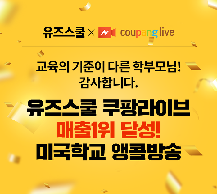 유즈스쿨 관계자는 “11월 쿠팡라이브 런칭 이 후 방송 2회 만에 매출 1위라는 기록을 달성, 학부모님들 의 큰 관심과 성원을 받았다”며 “미국 환경에서 출발한 영어 교육은 결과도 다르다는 것을 많은 학부모 님들께서 공감해주셨다. 앞으로도 양질의 라이브 방송을 통해 유즈스쿨이 지향하는 지속가능한 교육의 가치를 전달하겠다”고 밝혔다.