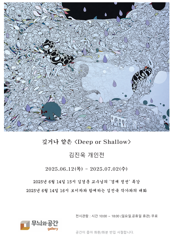 교대역 무늬와 공간 갤러리에서는 2025년 6월 12일부터 7 월 2일 사이에 김진욱 작가님의 초대전 초대전 <깊거나 얕은 (Deep or Shallow)>을 선보인다.