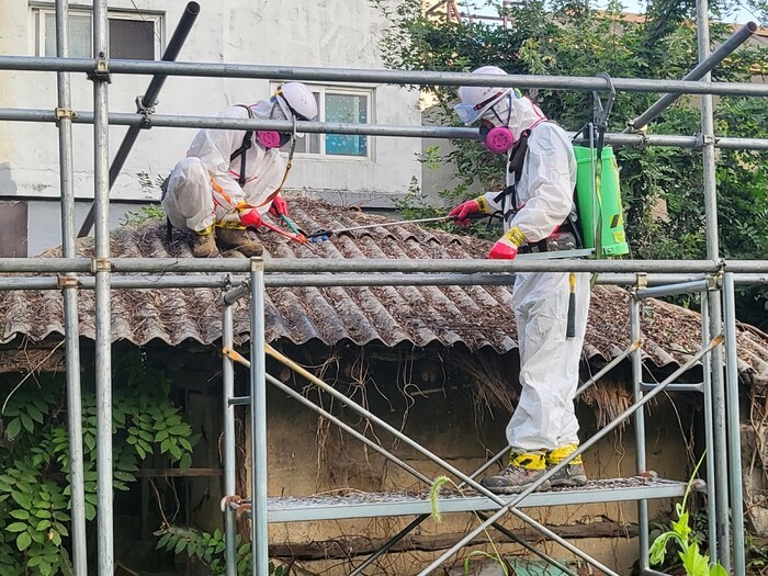 | ▲ 슬레이트 지붕 철거 처리 작업 / 광주광역시 제공 |