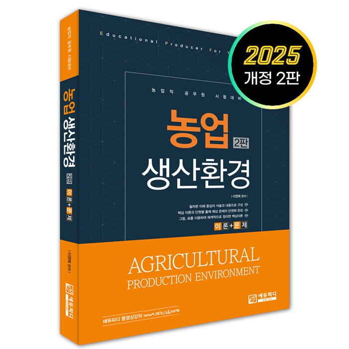 9급 농업직 공무원 시험 대비 ‘농업생산환경’ 개정 2판 교재는 에듀피디 인터넷 서점 또는 교보문고, 예스24, 영풍문고, 알라딘 등 온라인 및 오프라인 서점에서 구매할 수 있다.