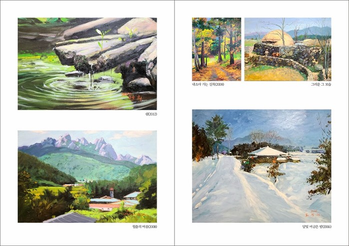 특히, ‘월출의 여름’은 작가가 살고 있는 집에서 보이는 강진의 월출산을 바라보며 그린 작품이다. 작가는 여행을 다니며 작가가 느낀 봄, 여름, 가을, 겨울 사계절의 색채와 감정 등을 캔버스에 담았다.