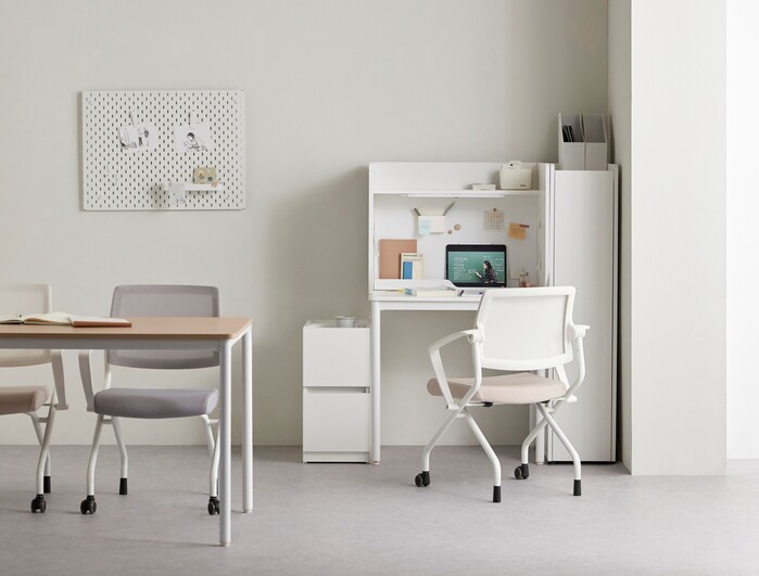 파티션과 슬라이딩 책장이 결합된 독보적인 포커스 데스크 선보여