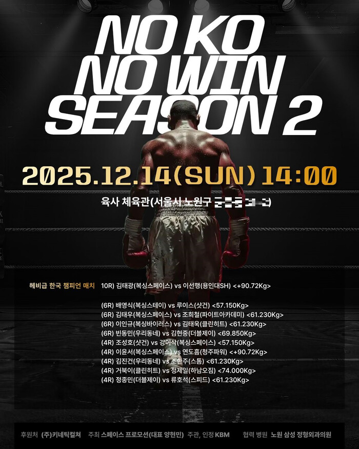 관객이 즐기고, 선수는 존중받고, 현장은 에너지로 가득 찰 ‘NKNW 시즌2’. 이번 12월 14일, 복싱은 다시 ‘축제의 언어’로 우리 앞에 돌아온다.