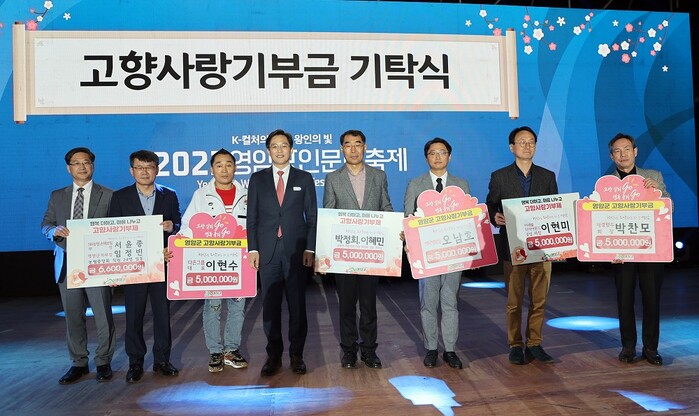영암출신 가수 하춘화씨를 비롯해, 박찬모 재경영암군향우회장, 이현미 ㈜새솔다이아몬드공업 사장, 오남호 영암한국병원장, 신북면 박종연씨의 자녀 박정회 내외, 이현수 다은그룹 대표가 각각 기부금 최고액인 500만원을 기부, 서윤종 NH농협 손해보험 부장과 임정빈 농협군지부장을 비롯한 농협중앙회 가족 24명이 660만원을 기부하며 따뜻한 마음을 전했다.
