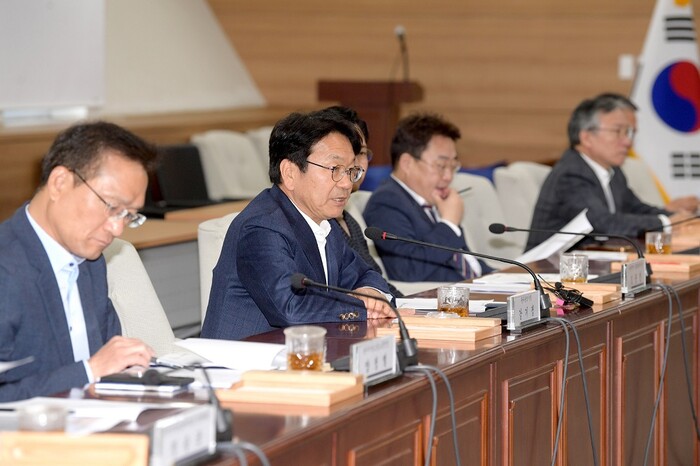 | ▲ 강기정 광주광역시장이 10일 오전 시의회 대회의실에서 열린 광주광역시 노사민정협의회 회의에 참석해 회의를 주재하고 있다. /광주광역시 제공 |