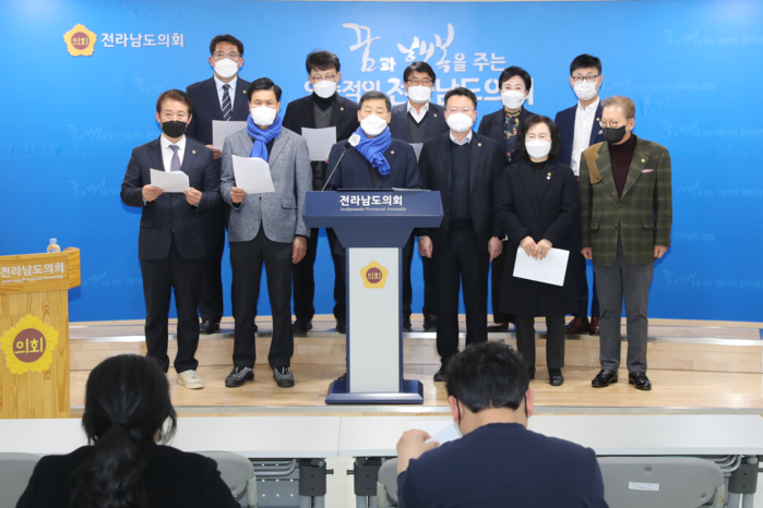 전남도의회 더불어민주당 소속 의원들은 10일 오후 3시 기자회견을 갖고 “이재명 후보와 더불어민주당은 이번 대선에서 반드시 승리해 윤석열 사단 손아귀에 놀아나는 검찰 공화국이 되는 일을 반드시 막을 것”이라고 천명했다.