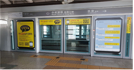 | ▲ 수로왕릉역 경전철 스크린 도어 김해야!톡 광고 |