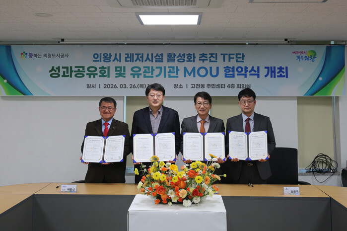 안치권 의왕 부시장은 “협약 참여 기관 간 협력이 중요한 마중물이 되어 의왕시 레저·관광 활성화에 의미 있는 성과로 이어지길 기대한다”며 “지역 관광 경쟁력 강화를 위한 다양한 사업 추진과 제도적 기반 마련에 최선을 다하겠다”고 밝혔다.