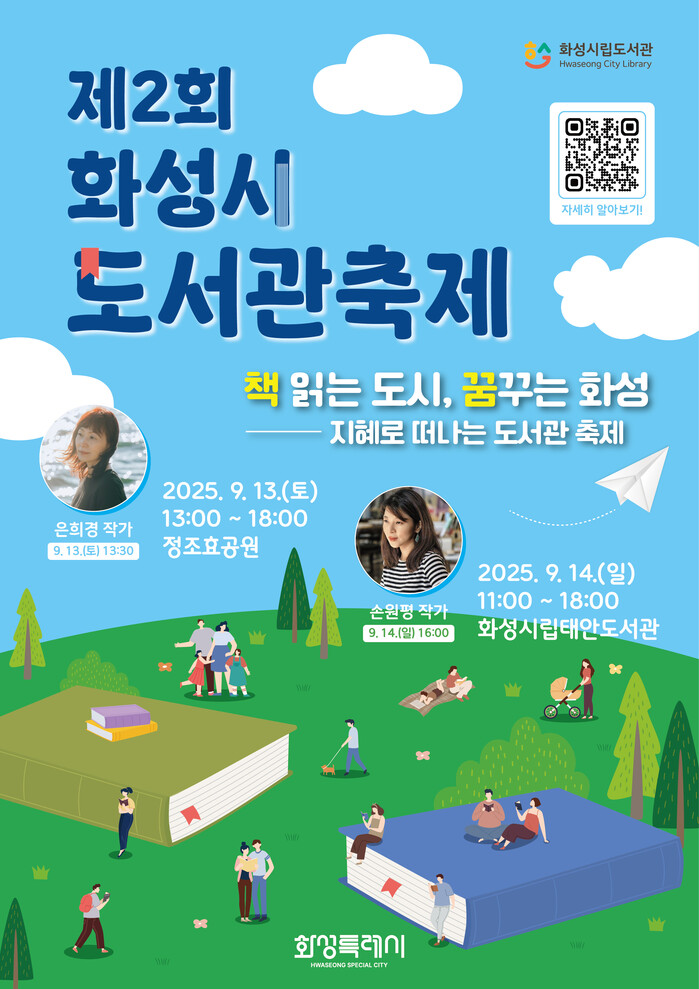 올해 축제는 ‘지혜로 떠나는 도서관 축제’라는 주제로, 첫날은 정조효공원에서, 둘째날은 화성시립태안도서관에서 시민들이 일상에서 책과 도서관을 더욱 가까이 만날 수 있도록 다채로운 프로그램이 운영된다.