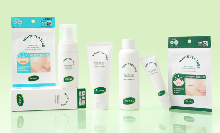 민감성, 트러블 케어 전문 브랜드 아크네스(Acnes)가 다이소 전용 라인으로 ‘화이트 티트리(White Tea Tree)’ 6종을 새롭게 선보였다.