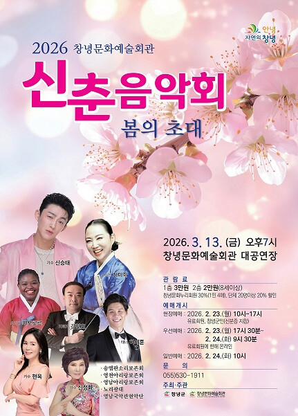 예매는 2월 23일 오전 10시부터 시작되며, 창녕군민과 문화누리 회원(유료회원)을 대상으로 현장 예매부터 우선 진행된다. 공연에 관한 자세한 사항은 창녕문화예술회관 누리집 또는 전화로 문의하면 된다.
