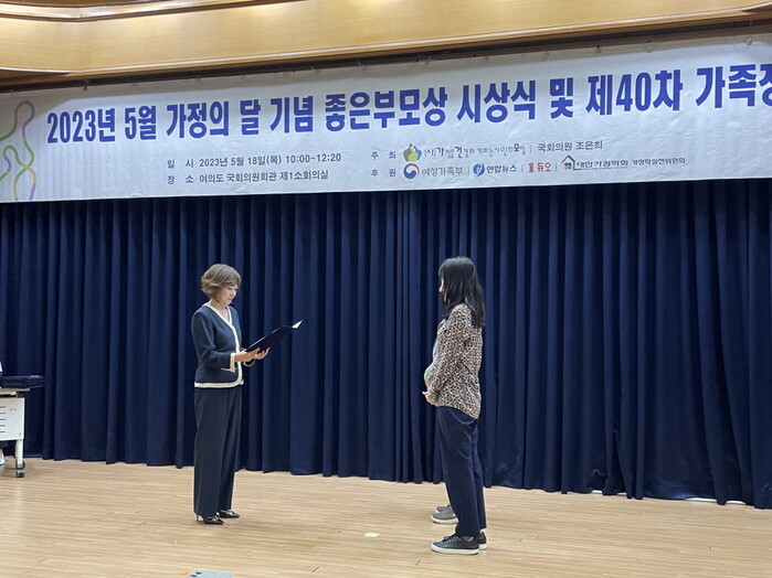 지난 18일, 가정의 달 5월을 맞아 가건모(가정을 건강하게 하는 시민의 모임)에서 주최한 2023년 좋은 부모상 시상식 및 제40차 가족정책포럼이 국회의원회관 제1소회의실에서 진행됐다.