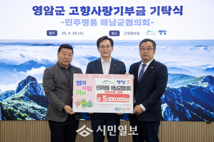 하루 전인 지난 4월 30일 민주평화통일자문회의 해남군협의회(회장 윤영삼)가 영암군에 고향사랑기부금 500만 원을 보내왔다.