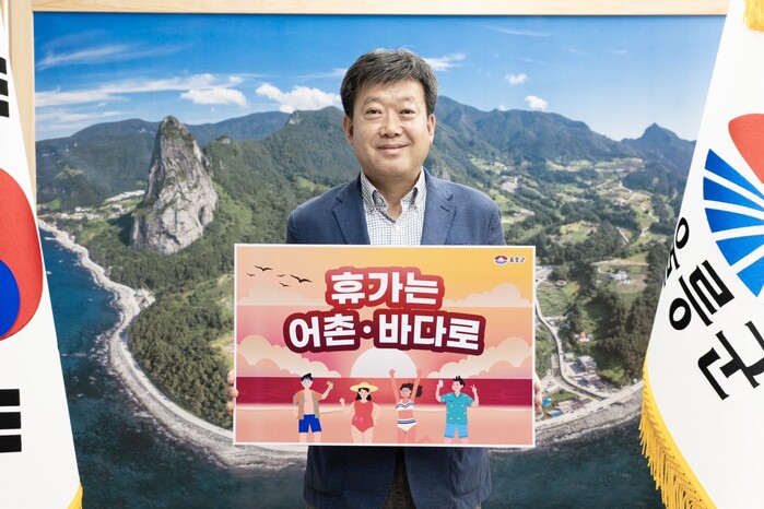 [울릉=백광태 기자] 남한권 경북 울릉군수가 최근 수산물 소비 촉진 및 국민들의 어촌 휴가 장려를 통해 어촌 경제 활성화를 지원하는 ‘수산물 소비 및 어촌 휴가 장려 캠페인’에 동참했다.