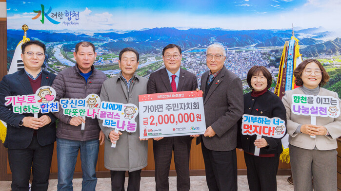 김윤철 합천군수는 “어려운 이웃들을 위하여 온정을 베풀어주신 가야면주민자치회에 감사드리며, 소중한 성금은 꼭 필요한 이웃에게 전달될 수 있도록 하겠다”고 감사의 마음을 전했다.