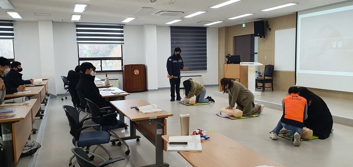 이에 따라 2월부터 공무원교육원에 입교하는 120회 대면교육 교육생 3100여 명은 각 과정의 1교시에 시 소방안전본부 구급대원의 지도로 심폐소생술을 익히게 된다.