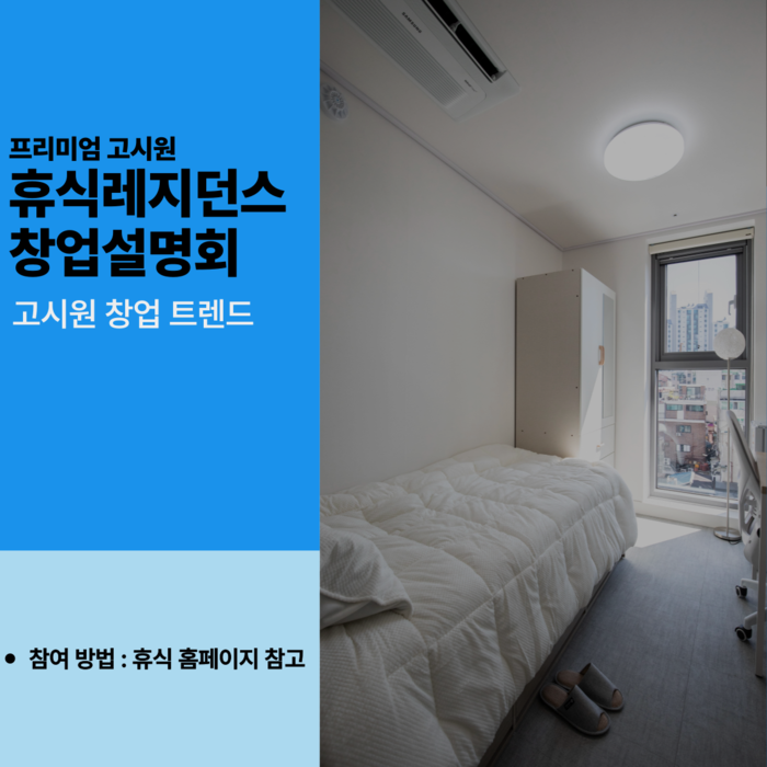 주식회사 휴식은 2015년도부터 고시원 사업을 운영해오면서 쌓인 노하우와 고시원 정보플랫폼 ‘고시락’을 운영하며 쌓인 빅데이터를 활용하여 가맹점의 창업 이후 운영과 마케팅에도 많은 도움을 주고 있다.