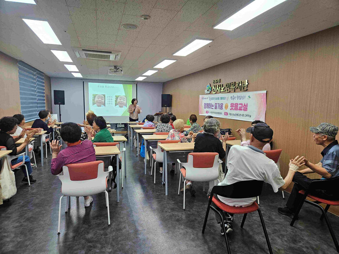 ‘웃음교실’은 이달 29일까지 매주 금요일마다 총 4회 실시해 ▲잃어버린 웃음 찾기 ▲웃는 뇌 만들기 ▲자존감 회복과 거울의 법칙 ▲웃음으로 치매 예방하기 등 실생활에 적용할 수 있는 웃음 체험 중심의 교육으로 구성됐다.