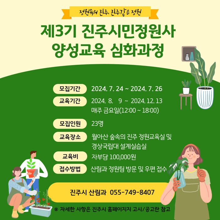 모집기간은 7월 24일부터 26일까지이며, 접수는 진주시청 산림과를 방문하거나 우편으로 가능하다.