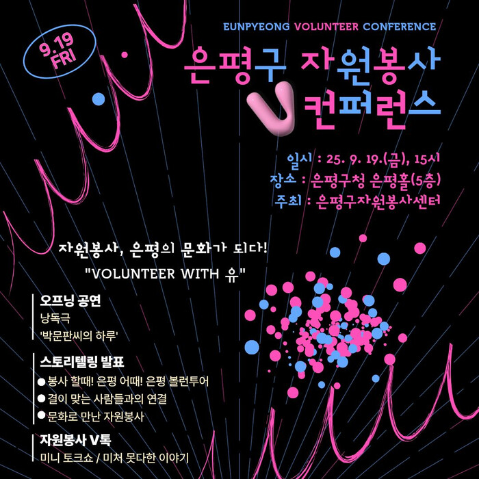 오는 19일에 진행될 2025년 은평구 자원봉사 컨퍼런스에서는 구호에 대한 발표를 시작으로 ▲봉사할 때, 은평 어때, 은평볼런투어 ▲결이 맞는 사람들과의 연결 ▲문화로 만나 자원봉사에 대한 현장 활동가 발표와 토론으로 시민 담론의 장이 열린다.