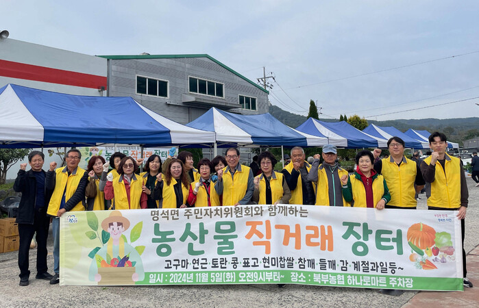 심용순 명석면 주민자치위원장은 “이번 농산물 직거래장터에 적극 참여해주신 주민들에게 감사하다”며 “내년에는 더욱더 다양한 농산물로 찾아뵙겠다”고 말했다.