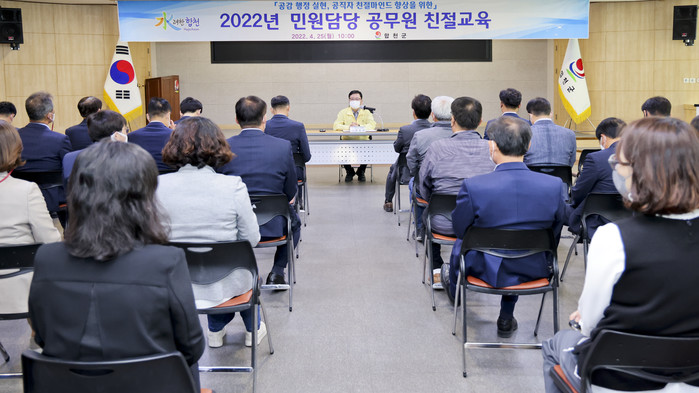 이선기 합천군수 권한대행은 인사말을 통해 “민원인이 체감할 수 있는 가장 큰 행정서비스는 친절”이라며, “군민들께 감동을 줄 수 있는 마음가짐과 업무적으로도 더 많은 노력이 필요한 만큼 신속 정확한 업무처리로 민원인의 만족도를 높이고 친절한 민원 행정서비스 제공에 최선을 다할 것”을 당부했다.