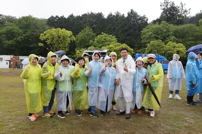 | ▲ 보성세계차엑스포 성공 이끈 숨은 주역, 자원봉사자!_자원봉사자들이 김철우 보성군수와 기념사진을 찍고있다.(출처=보성군) |