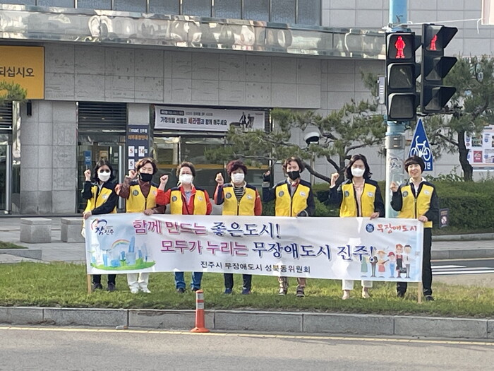 이날은 무장애도시 성북동위원회 회원과 직원 등이 참여한 가운데 진주 이마트 근처에서 장애 인식개선 캠페인을 실시하고, 인근 진주시 교육지원청에서 장애인전용주차구역 이용 준수 계도활동을 하며 무장애도시 조성을 위해 노력하였다.