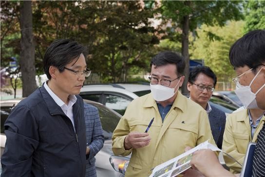 | ▲ 우승희 영암군수 당선인(좌측)이 군 관내 현안사업 추진 현장을 방문해 담당 공무원으로부터 사업 보고를 받고 있다. / 사진=당선인 홍보팀 제공 |