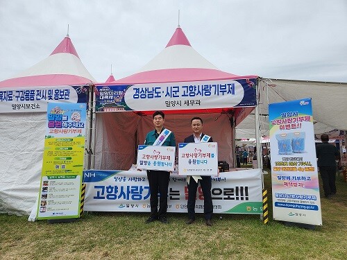 이번 홍보는 밀양시와 농협중앙회 밀양시지부 외에 경상남도청, 경남농협, 창원시, 창원농협, 양산시, 고성군, 함안군, 합천군, 하동군이 참여해 각시군의 우수한 농축산물로 구성된 고향사랑기부제 답례품을 홍보하고, 현장 기부와 경품을 나눠주는 이벤트를 진행해 축제장을 찾은 방문객들의 발길을 끌었다.