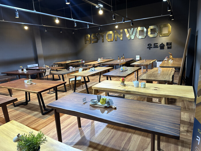 1500평 규모의 종합 가구 전시장인 에스턴우드는 우드슬랩 전용관을 별도로 운영하며 다양한 수종과 맞춤 제작 옵션을 제공하는 곳이다.