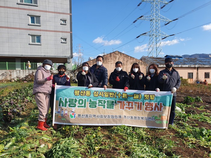 양산시 평산동지역사회보장협의체 위원 및 평산동행정복지센터 직원 10여명은 지난 1일 ‘평산동 십시일반(十匙一飯) 텃밭가꾸기 사업’의 일환으로 약 660㎡의 텃밭의 무와 배추를 수확했다.
