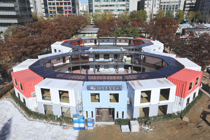 덕양구청 옆 42개의 컨테이너로 이루어진 ‘28청춘사업소’는 사무실 공간뿐 아니라 메이커스페이스, 교육장, 화상회의실 등을 갖춘 청년창업 공간으로 현재 23개의 청년 기업이 입주해있다.
