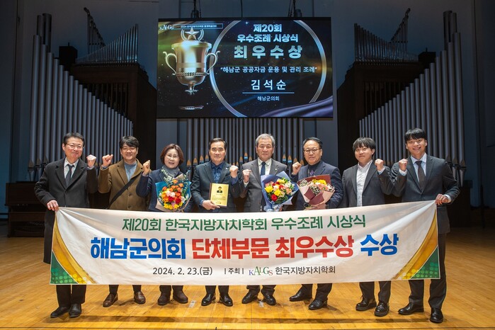 [해남=정찬남 기자] 전남 해남군의회(의장 김석순)는 지난 23일 숭실대학교에서 열린 제20회 한국지방자치학회 우수조례 기초단체부문 최우수상을 수상했다고 26일 밝혔다.