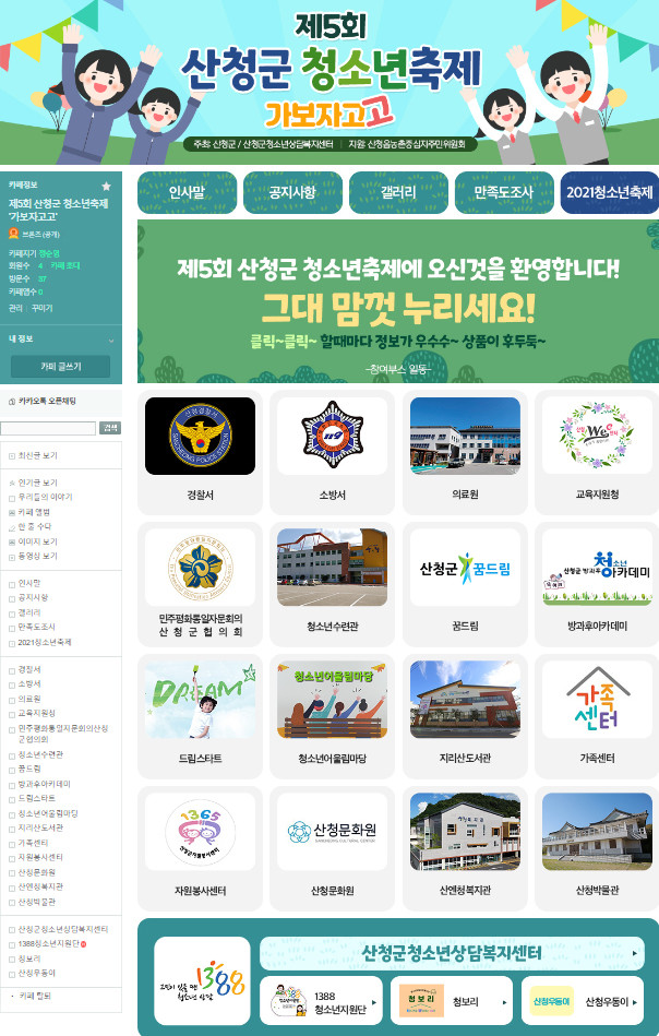 온라인 축제참여는 포털사이트 다음 카페 ‘제5회 산청군 청소년축제 가보자고고’를 통해 가능하다.