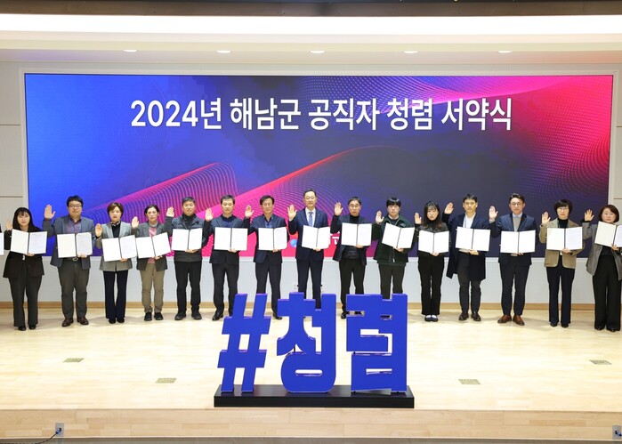 명현관 군수는 “공직자 한명 한명의 마음에 청렴이 자리잡고 있어야 청렴한 조직문화가 꽃피울 수 있다”며 “군수를 포함한 전 해남군 공직자가 하나된 마음으로 노력해 신뢰받는 군정, 청렴한 조직으로 굳건히 자리매김하겠다”고 각오를 전했다.