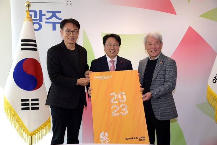 강기정 시장은 22일 시청에서 노동일 대표이사 등이 참석한 가운데 ‘광주FC 2023 시즌 멤버십 카드’를 구입, 제1호 주인공이 됐다.