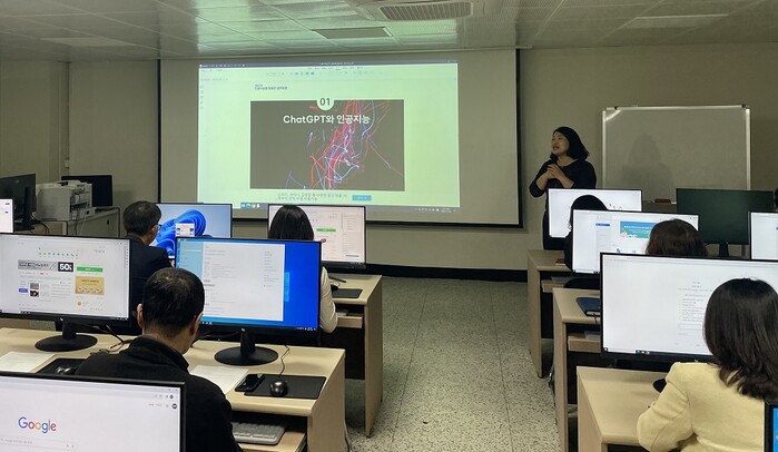 교육장소인 군청 전산교육장에는 40여 명의 공직자가 가득 채워, 최근 사회적 관심사로 떠오른 챗GPT의 인기를 실감하게 했다.