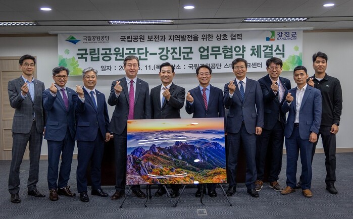 군은 지난 11일, 강진원 군수와 송형근 국립공원이사장 등 관계자등이 참석한 가운데, 총 200억 원의 사업비가 투자되는 ‘월출산 국립공원 관리와 관광 활성화를 위한 MOU’를 체결했다.