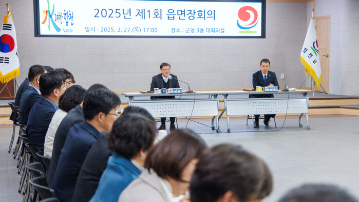 이날 회의에서는 고향사랑기부금 확대 시행, 지방재정 신속집행 추진 협조, 청렴책임관제도 실시, 제24회 합천벚꽃마라톤대회 준비 협조사항 전달, 영농기 용수공급 시설점검 및 농업분야 지원사업 홍보철저, 봄맞이 대청소 추진, 보건·건강분야 시책 및 지원사업 등 군정 현안 사안에 대한 보고가 이어졌다.