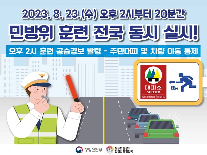 훈련 공습경보가 발령되면 주민은 안내요원의 유도에 따라 즉시 가까운 민방위대피소로 이동해야 한다.