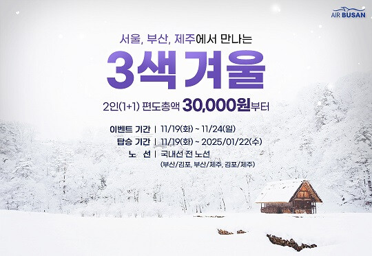 에어부산 관계자는 “1인 가격에 2인이 함께 즐길 수 있는 이번 프로모션을 이용해 다가올 겨울에 합리적인 비용으로 가까운 국내 여행을 계획하시길 바란다.”라고 전했다.